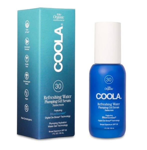 - Hyaluronic Acid, Organic Aloe, and Organic Coconut Water boost skin's water retention