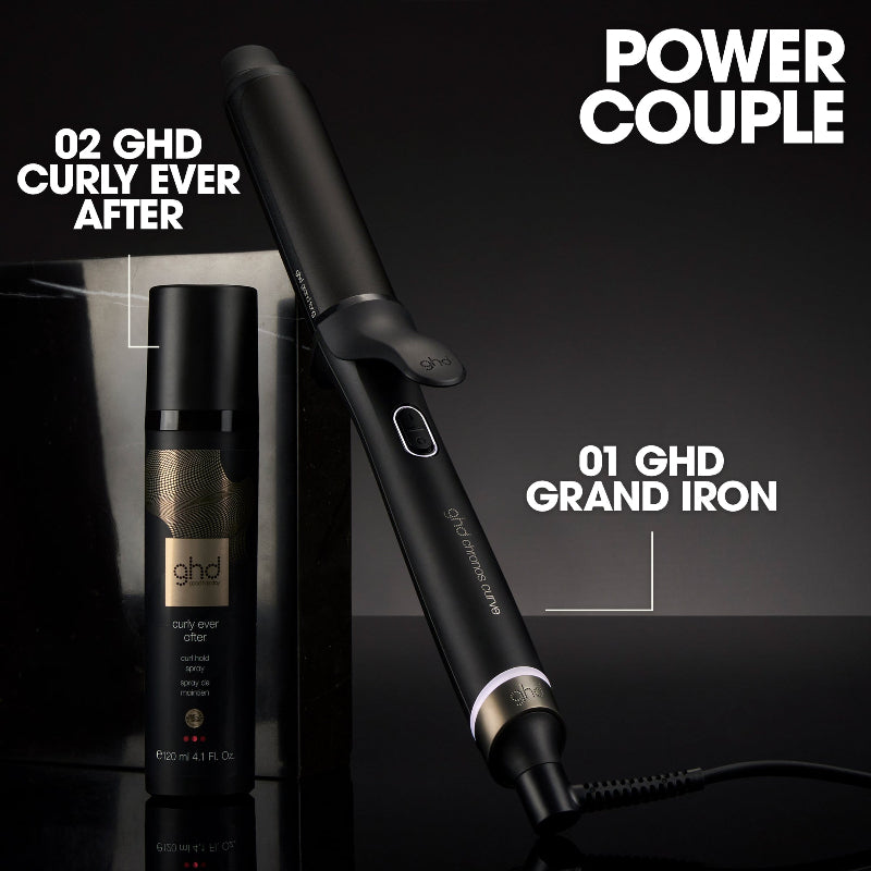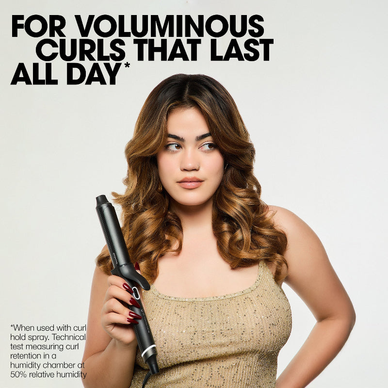 Meet your new go-to for bold, voluminous curls: the ghd Chronos Curve Grand Curling Iron — made for big, bouncy styles that command attention. Featuring a professional 1.25" barrel, this sleek tool creates full-bodied curls and waves with ease. Whether you're going all-out glam or just adding soft volume to your everyday look, the Chronos Curve Grand Curling Iron helps you level up your style — fast. Powered by curl-responsive technology, it intuitively adapts to your styling motions, maintaining a consistent 365°F from root to tip for smooth, defined curls without excessive heat or damage. Expect salon-worthy results that last from morning meetings to midnight events. The anodized-coated barrel ensures a smooth glide and frizz-free finish, delivering up to 50% smoother and 50% shinier hair compared to air-dried styles. And thanks to long-lasting hold technology, your curls stay voluminous for up to 24 hours—no touch-ups necessary. Smart design features like a cool tip, built-in safety stand, and auto shut-off after 20 minutes keep styling safe and worry-free. With universal voltage, a heat-resistant glove, and a professional-length 8.8 ft swivel cord, it’s ready to perform wherever you are. For show-stopping volume, long-lasting shine, and effortless styling, the ghd Chronos Curve Grand Curling Iron is your ultimate curl companion.