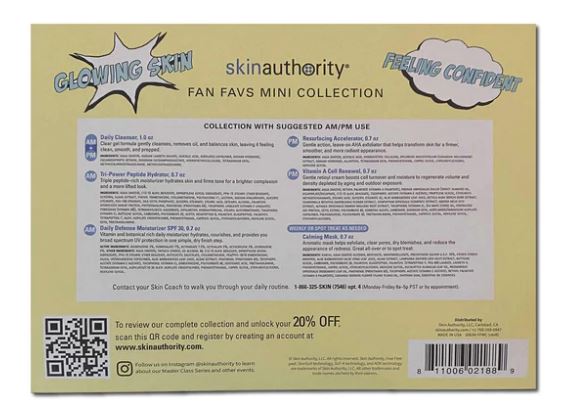 This boxed collection includes our most popular face products in a convenient mini-size to transform your appearance using nourishing, refining and protective ingredients. Used in a daily AM/PM routine, these products will plump, tighten, brighten, smooth, and hydrate your face to a smooth, bright, and clear complexion. As always, Skin Authority products are free of parabens, dyes, gluten, and animal testing.